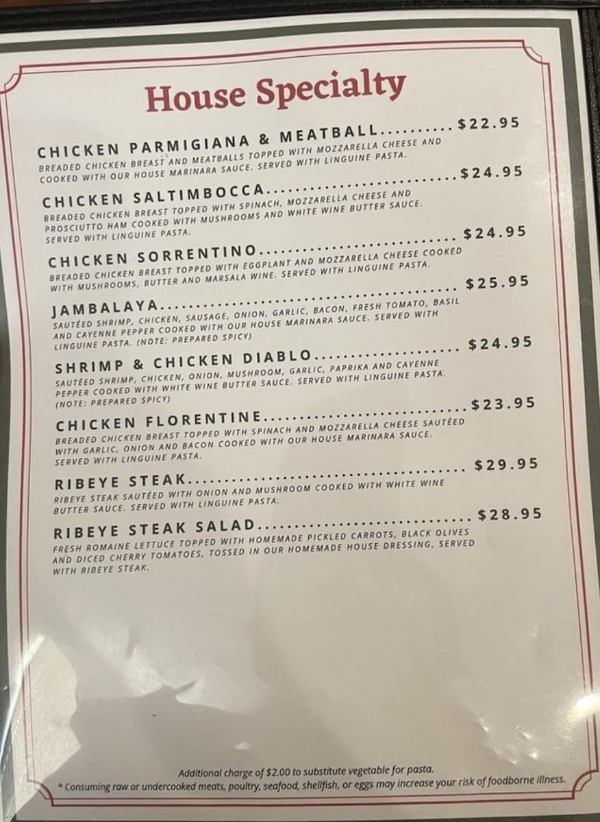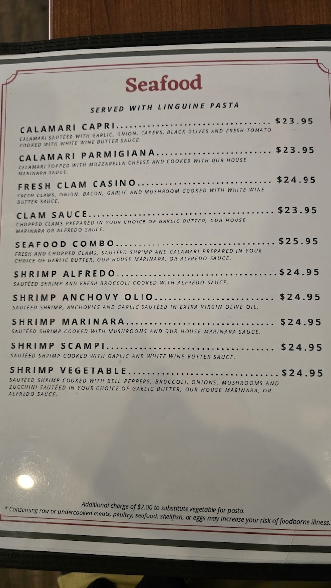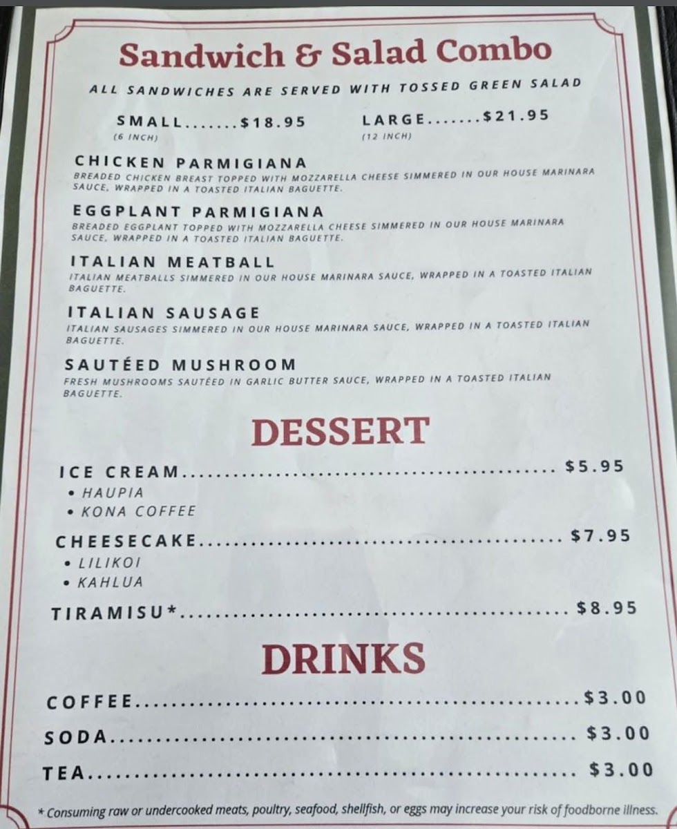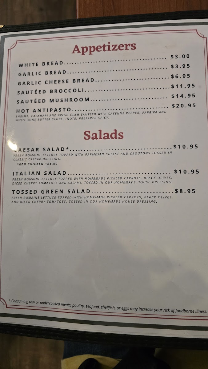 Catania Ristorante Italiano offers a diverse menu with a blend of classic Italian dishes, perfect for any occasion. Start with a fresh Caesar Salad or Italian Salad, or opt for a Tossed Green Salad to accompany your meal. For something heartier, the Sautéed Mushroom Sandwich and Italian Sausage Sandwich are great choices, and the Eggplant Parmigiana Sandwich is a flavorful vegetarian option. Appetizers like Hot Antipasto and Garlic Cheese Bread set the stage for a delicious meal. The restaurant also offers substantial party trays, such as the Large Tray Seafood Combo and Large Tray Chicken Alfredo, perfect for gatherings. For seafood lovers, the Clam Sauce, Shrimp Scampi, and Seafood Combo provide a satisfying taste of the ocean. A standout on the menu is the Chicken Florentine, while the Ribeye Steak and Chicken Parmigiana & Meatball offer delicious meaty options. Poultry fans will enjoy dishes like Chicken Marsala and Chicken Alfredo. Vegetarians can delight in the Penne Broccoli Alfredo or the Spaghetti & Vegetable, while classic pasta lovers can indulge in favorites like Spaghetti & Meatball & Sausage or Meat Lasagna. The variety ensures that every guest will find something to enjoy, with each dish crafted to highlight the rich flavors of Italian cuisine.
